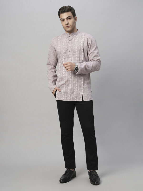 Lilac handloom dobby front, highlited with show stitches men short kurta