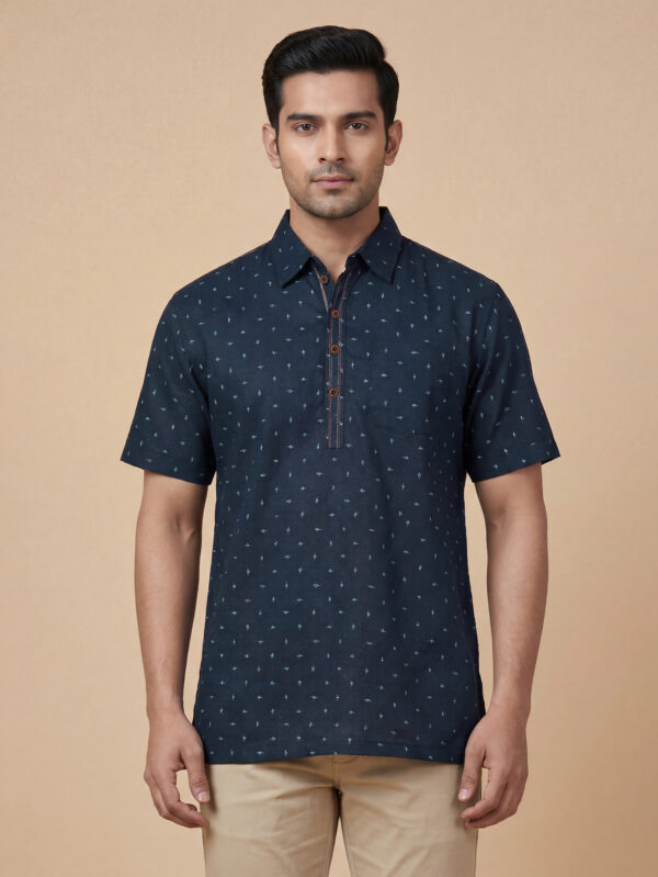 Navy blue color printed cotton men short kurta
